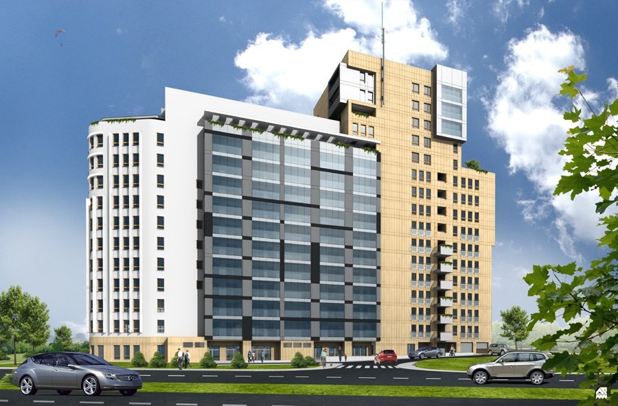 Budowa szesnastokondygnacyjnego budynku mieszkalno-usługowego rozpoczęla się w 2009 roku.